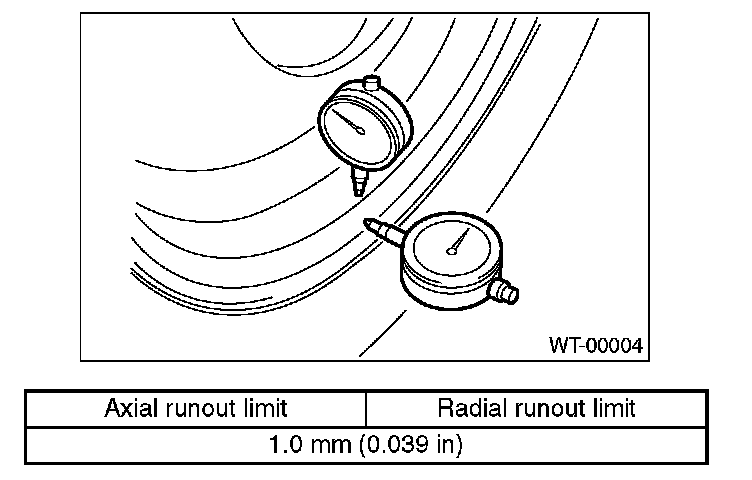 5. If the measured runout still exceeds specifications, replace the wheel.