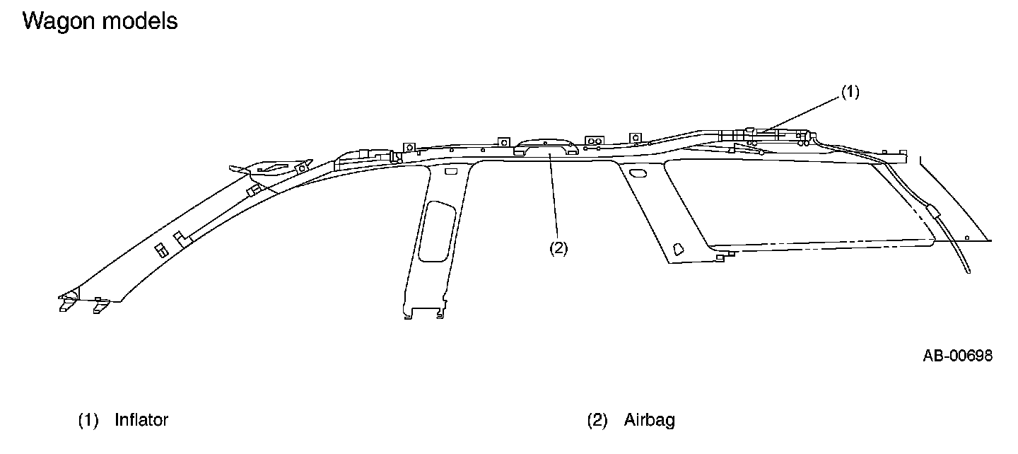 The SRS curtain airbag module cannot be disassembled. The curtain airbag modules are fixed to the vehicle body with a bracket and clips, and consists of an inflator and an airbag.