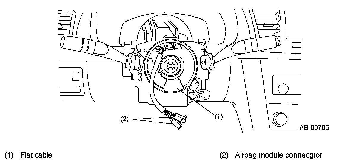 The flat cable maintains connection between the airbag module on the steering wheel and the airbag harness even when the steering wheel is turned. Ignition signal from the airbag control module is sent through the roll connector to the driver's seat airbag module.