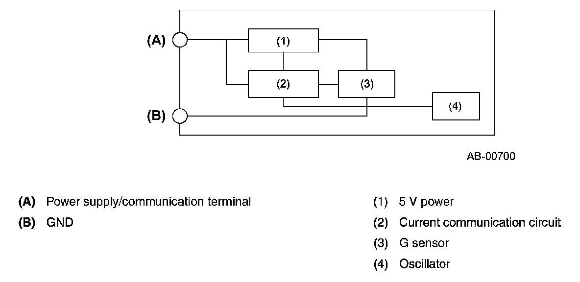 If it detects an impact exceeding the specified level from the front, it sends a signal which is used for airbag system deployment judgment to the airbag control module.