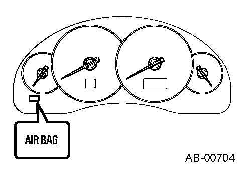 The airbag warning light is located inside the combination meter. It illuminates if a poor connection in the airbag circuit occurs, or if the airbag control module detects an abnormal condition. When the airbag system is normal, this light comes on when the ignition switch is turned ON and then goes out about 6 seconds later.