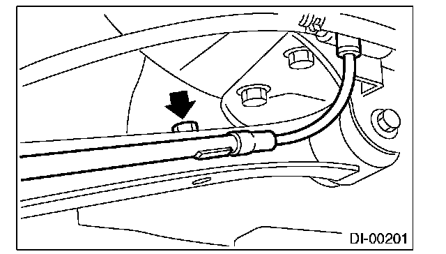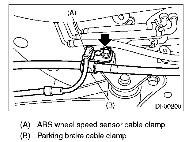 (1) Remove the ABS wheel speed sensor cable clamp and parking brake cable clamp from bracket.