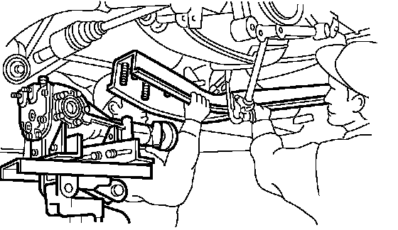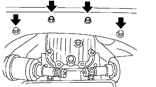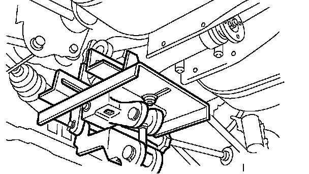 20) While slowly lowering the transmission jack, move the rear differential forward and remove differential front member and rear differential from vehicle.