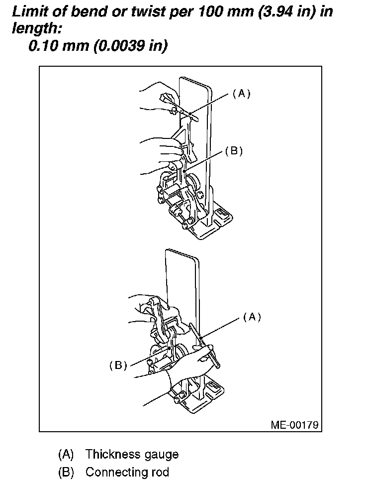 2. Check for bend or twist using a connecting rod aligner. Replace the connecting rod if the bend or twist exceeds the limit.