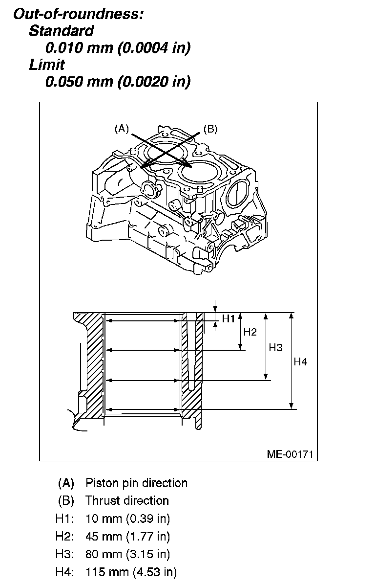 NOTE: Immediately after reboring, the cylinder diameter may differ from its real diameter due to temperature rise. Thus, pay attention to this when measuring the cylinder diameter.