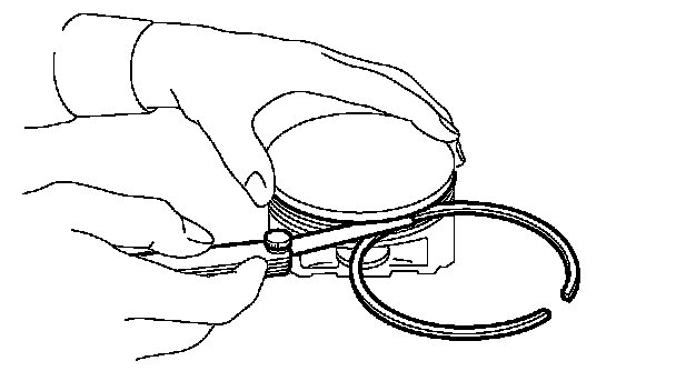14. Position the second ring gap at 180° on the reverse side for the top ring gap.