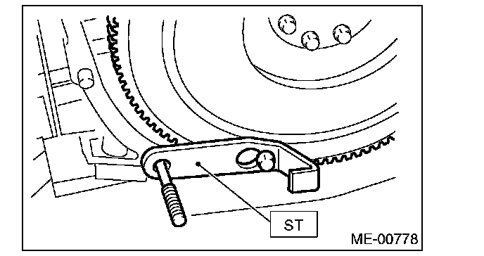 2. Using the ST1, turn the crankshaft so that #1 and #2 connecting rods are set at bottom dead center.