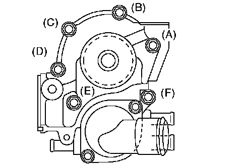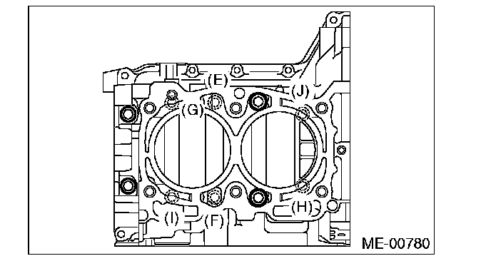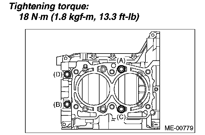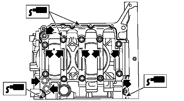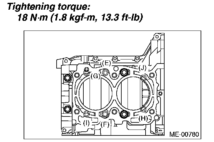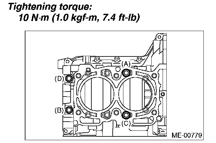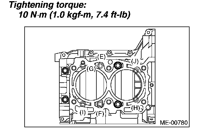 5. Tighten the 10 mm cylinder block connecting bolts in alphabetical sequence shown in the figure. (LH side)