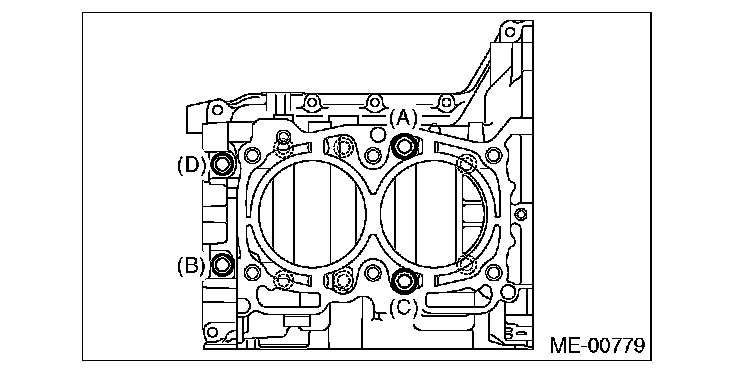 11. Tighten the 8 mm and 6 mm cylinder block connecting bolts in alphabetical sequence shown in the figure.