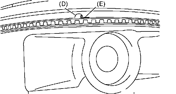 16. Align upper rail spin stopper (E) with piston side surface hole (D).
