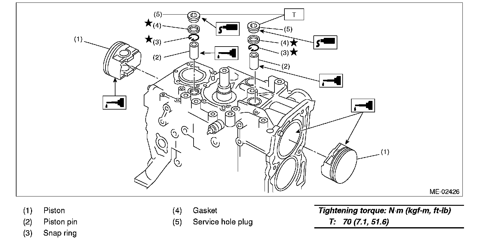 3. Make sure that the piston pin can be inserted into the piston pin hole with a thumb at 200C (680F). Replace if defective.