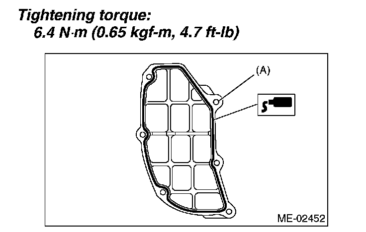 Tightening torque: 10 Nm (1.0 kgf-m, 7.4 ft. lbs.)