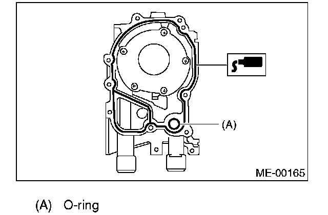 NOTE: Do not allow liquid gasket to jut into O-ring grooves, oil passages, bearing grooves, etc.