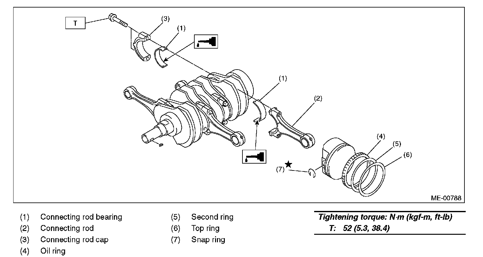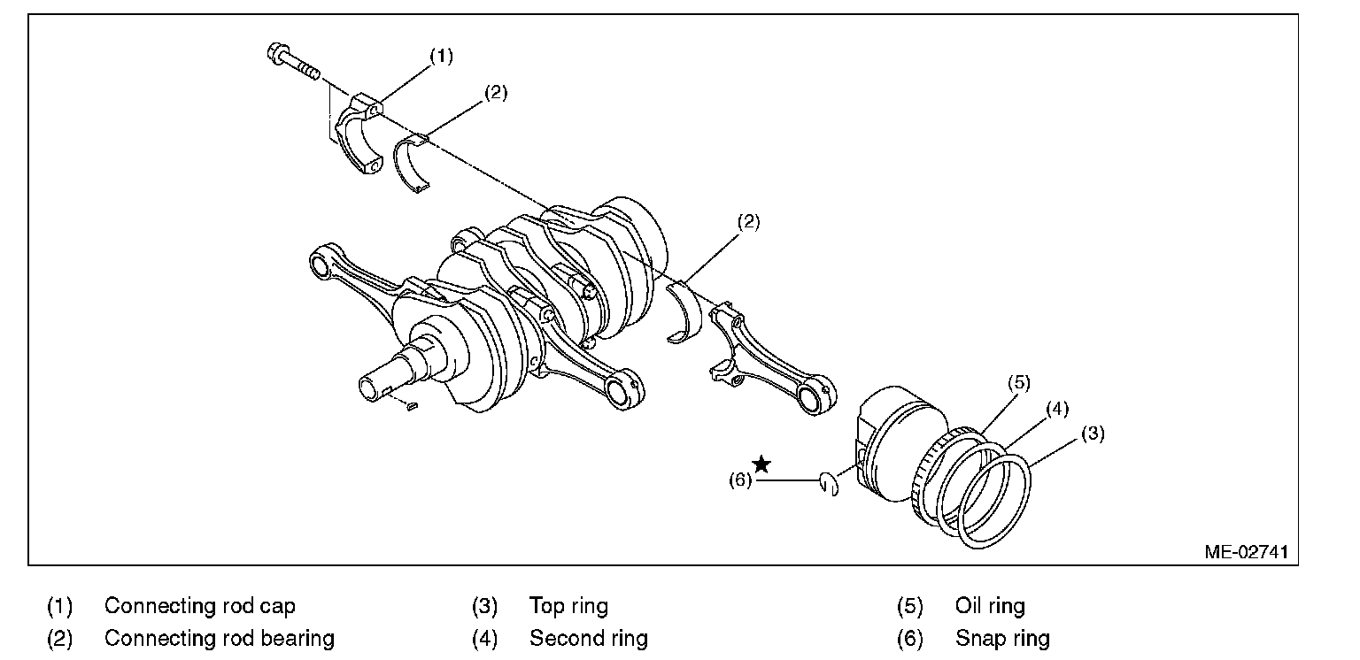 5. Check the piston pin snap ring for distortion, cracks and wear.