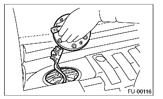 8. Remove the bolts which install the fuel sub level sensor on the fuel tank.