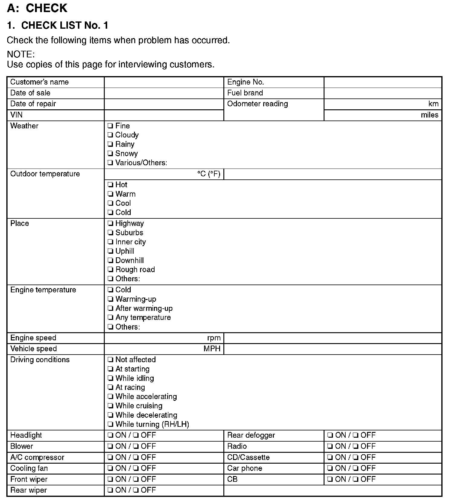 Check List No. 1: