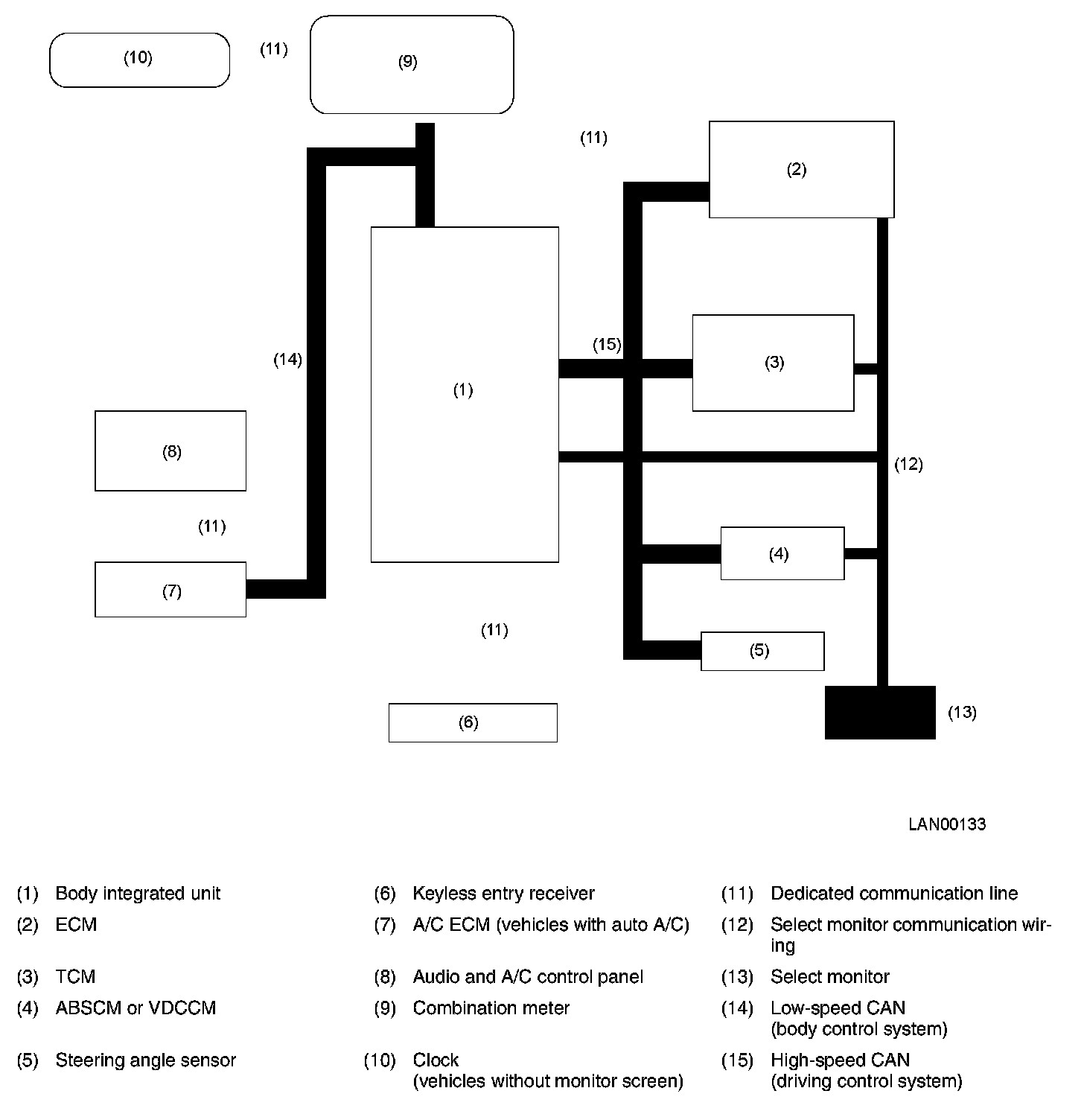 - The high-speed and low-speed LANs described, and the IE_Bus, dedicated communication lines, and select monitor communication, etc. comprise the vehicle's data communication system.