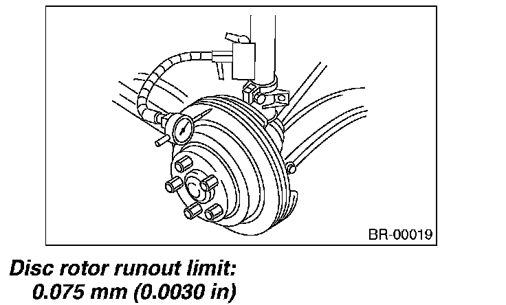 Disc rotor runout limit. 0.075 mm (0.0030 inch)