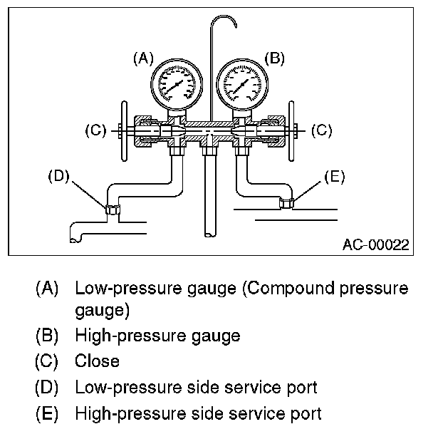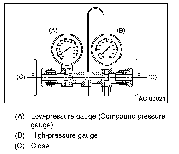 3. Make sure the valves on low-/high-pressure sides of manifold gauge set are fully closed.