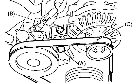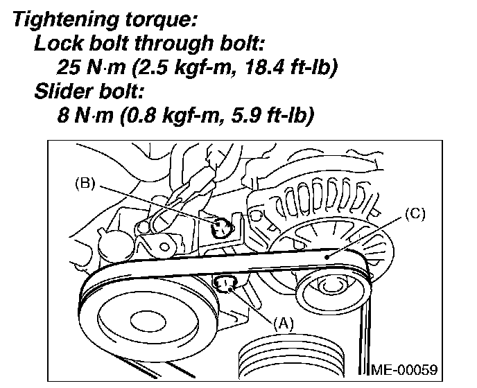 1. Install the belt (C), and tighten the slider bolt so as to obtain the specified belt tension