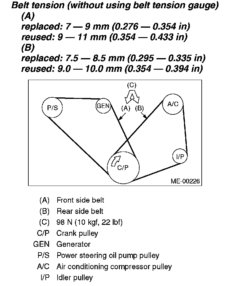 Belt tension (without using belt tension gauge)