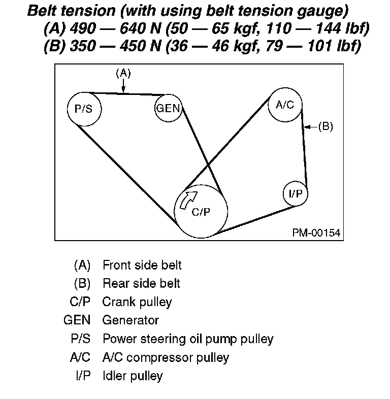 Belt tension (with using belt tension gauge)
