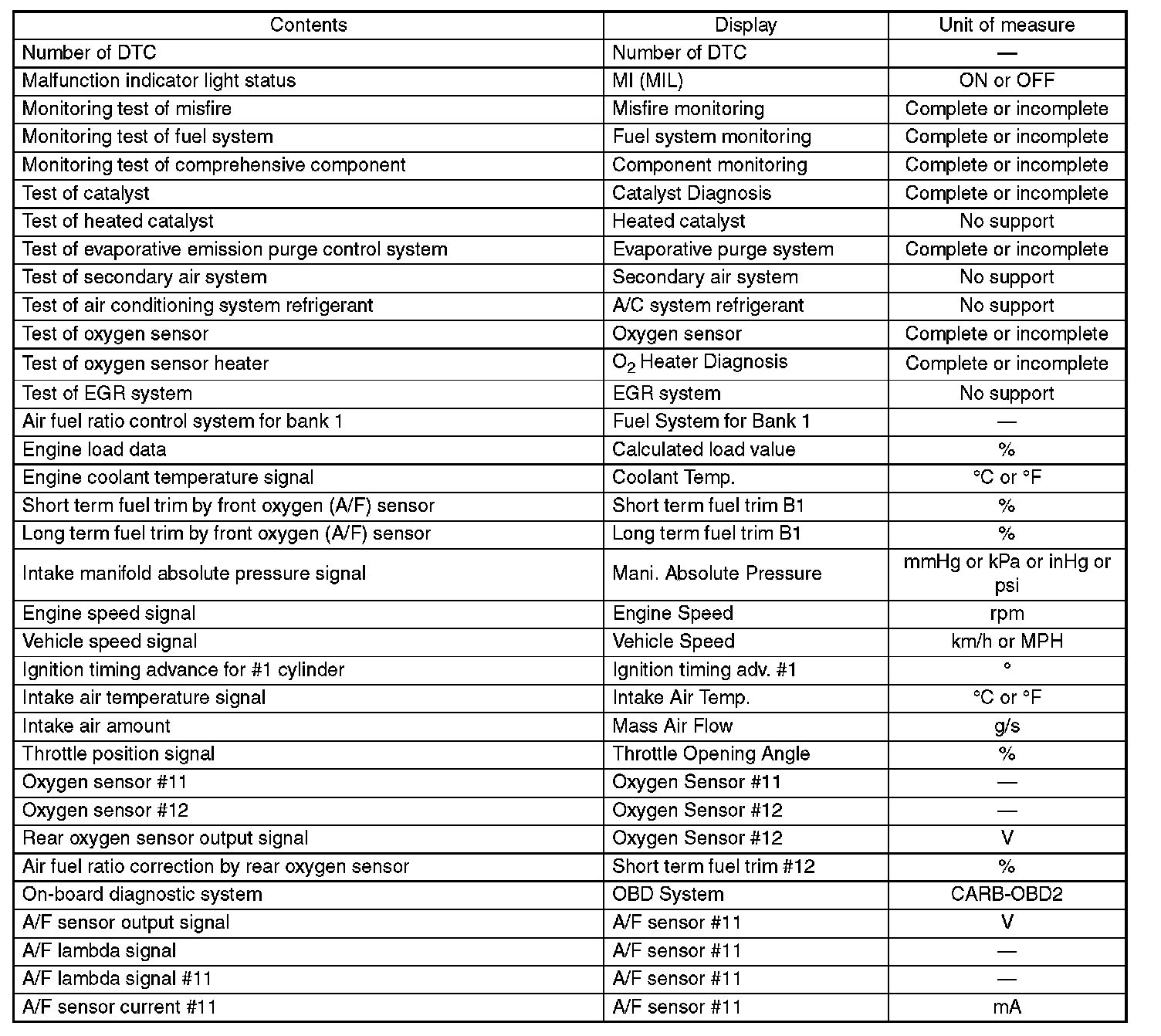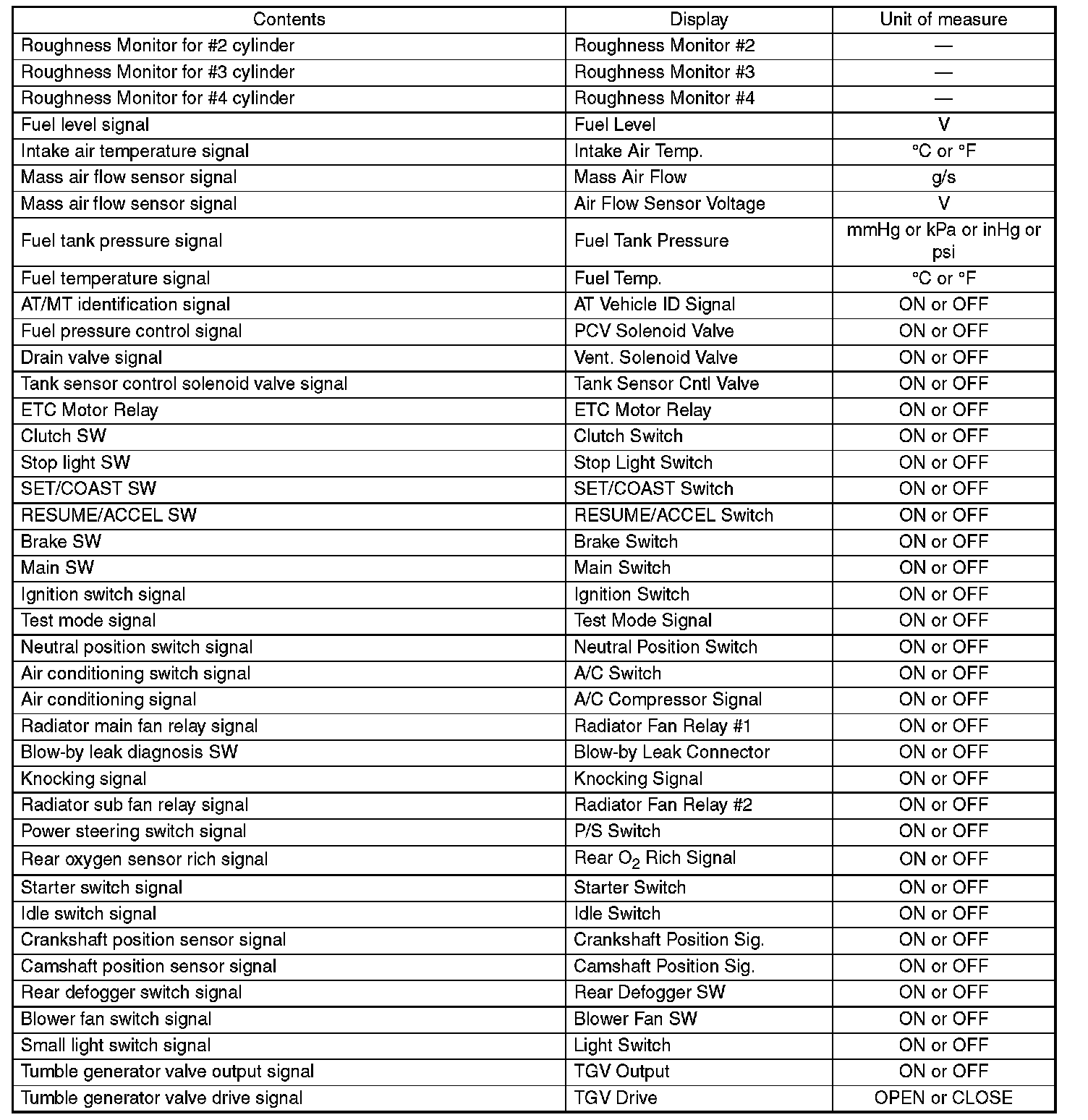 READ CURRENT DATA FOR ENGINE. (OBD MODE)