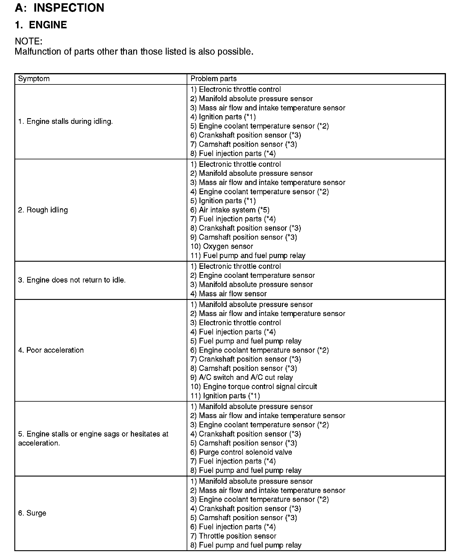 GENERAL DIAGNOSTIC TABLE
