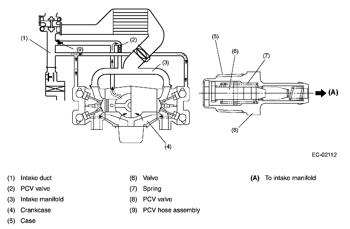 Crankcase Emission Control System- The positive crankcase ventilation (PCV) system prevents air pollution that will be caused by blow-by gas being emitted from the crankcase.