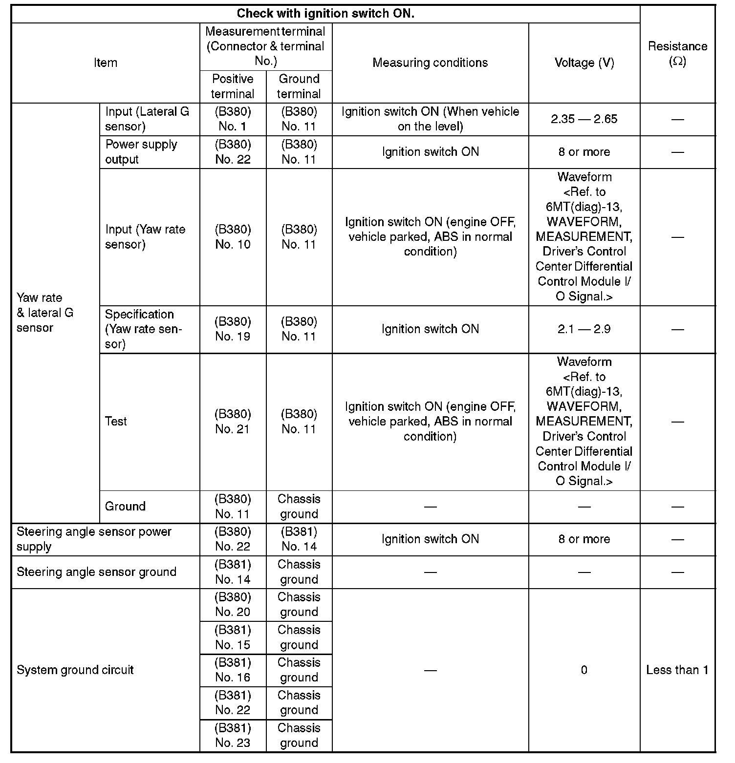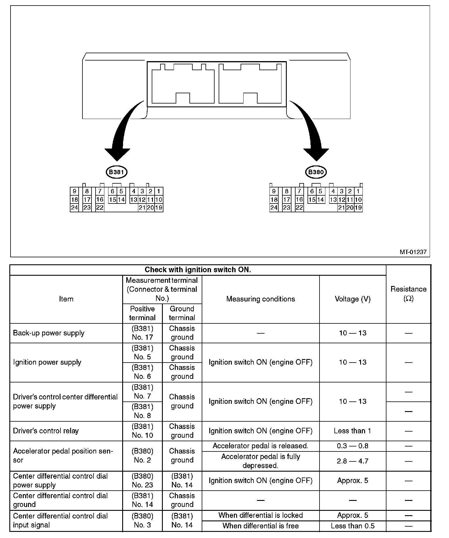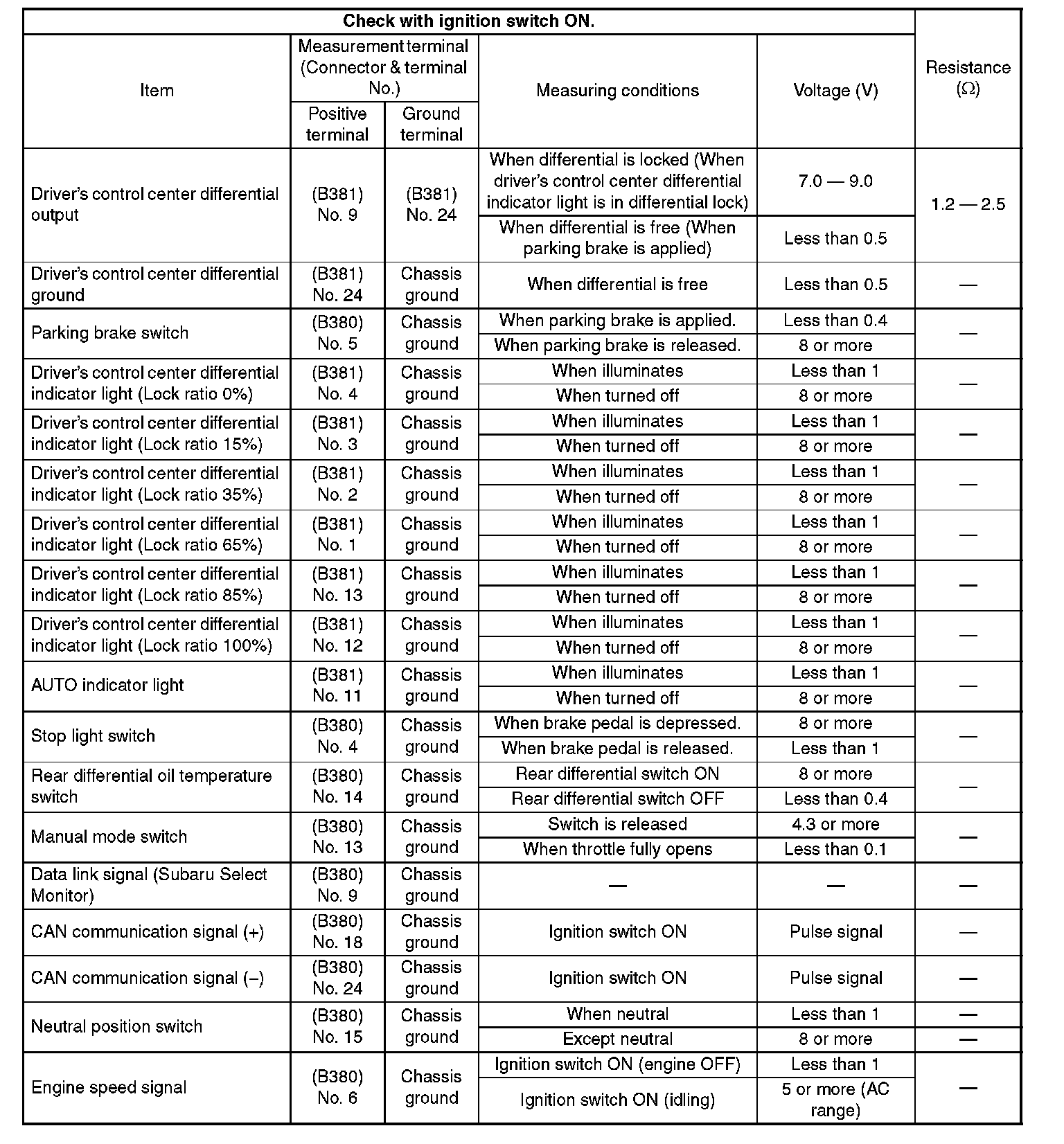 Driver's Control Center Differential Control Module 1/0 SignalELECTRICAL SPECIFICATION
