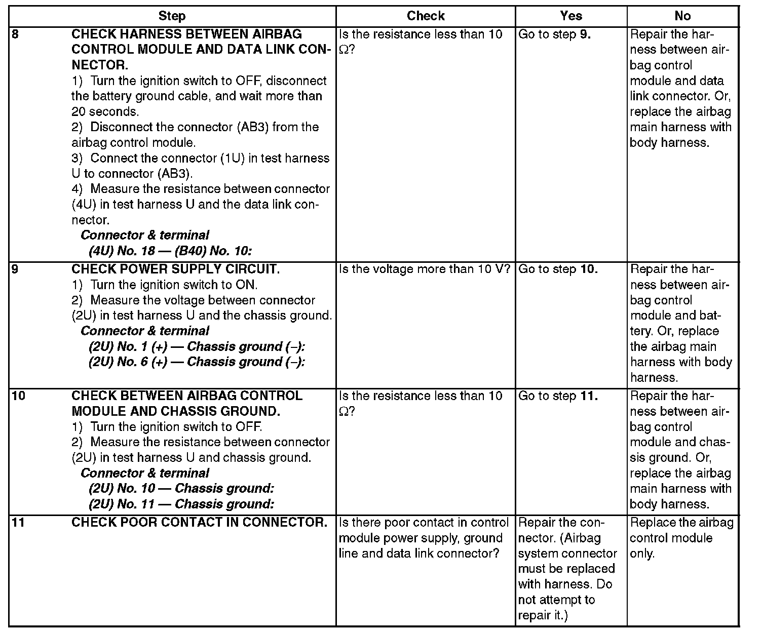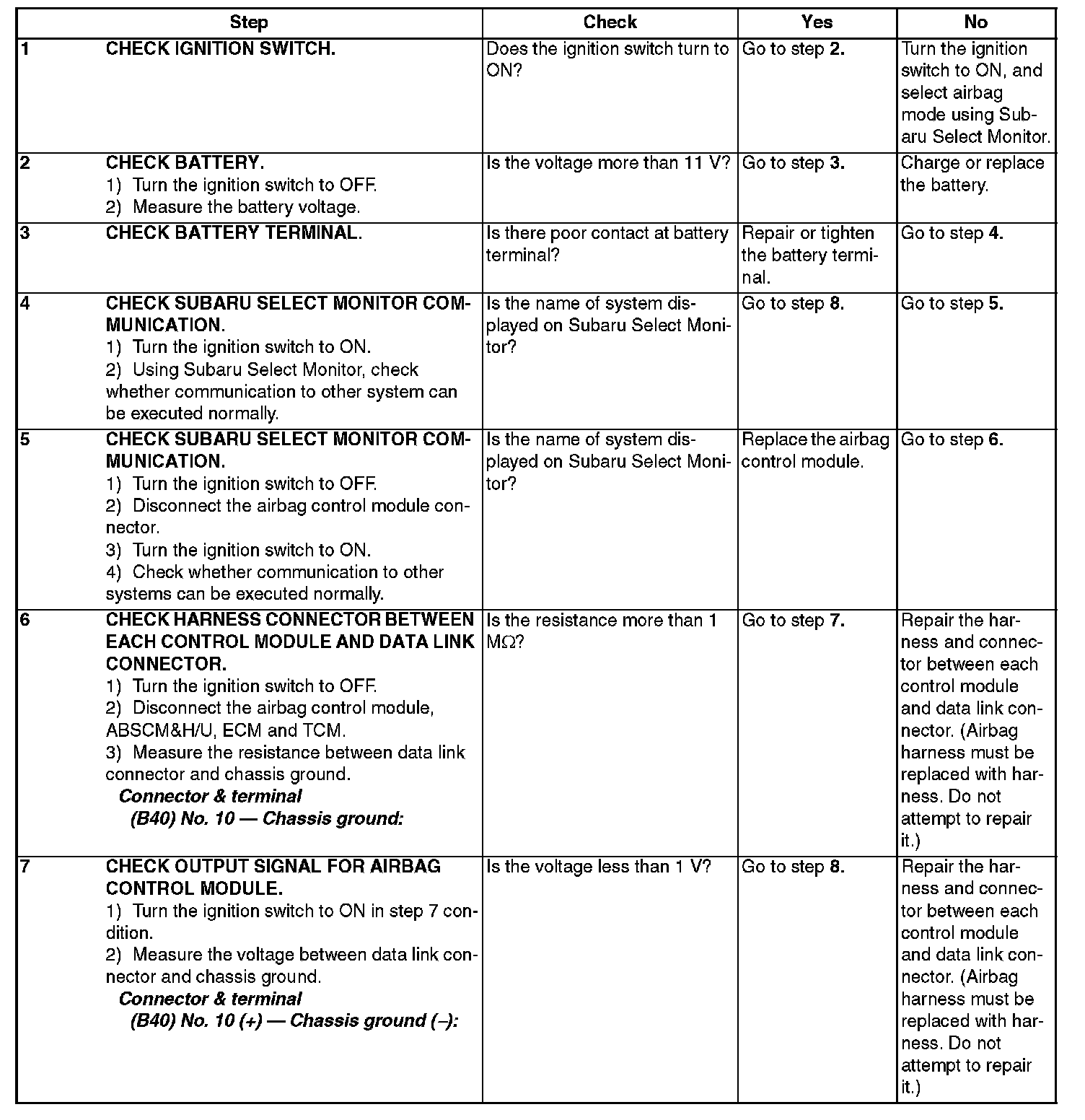 Communication is impossible between airbag control module and Subaru Select Monitor.