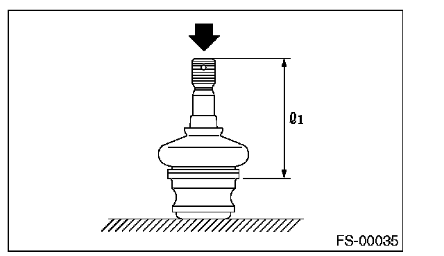 1) Measure the play of ball joint by the following procedures. Replace with a new one when the play exceeds specified value.(1) With 686 N (70 kgf, 154 lbs.) loaded in direction shown in the figure, measure the dimension l1.