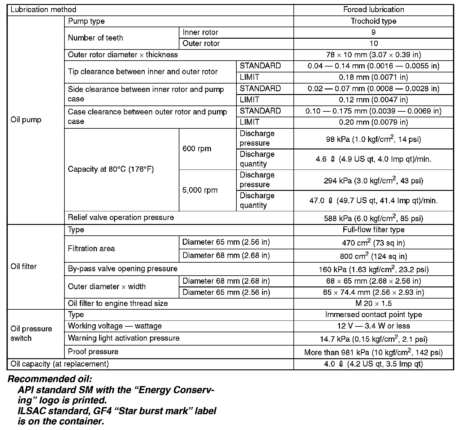SPECIFICATIONRECOMMENDED OIL