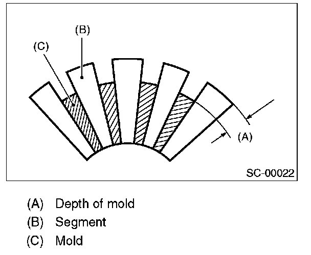Depth of segment mold: 0.5 mm (0.020 in)