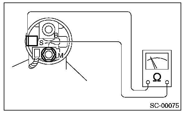 Using a circuit tester (set in "ohm"), check that there is continuity between terminals S and M, and between terminal S and ground