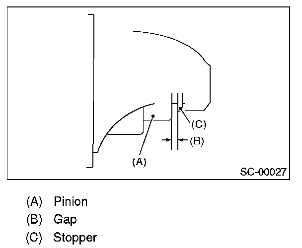 Measure the pinion gap while the pinion is pulled out as shown in the figure.