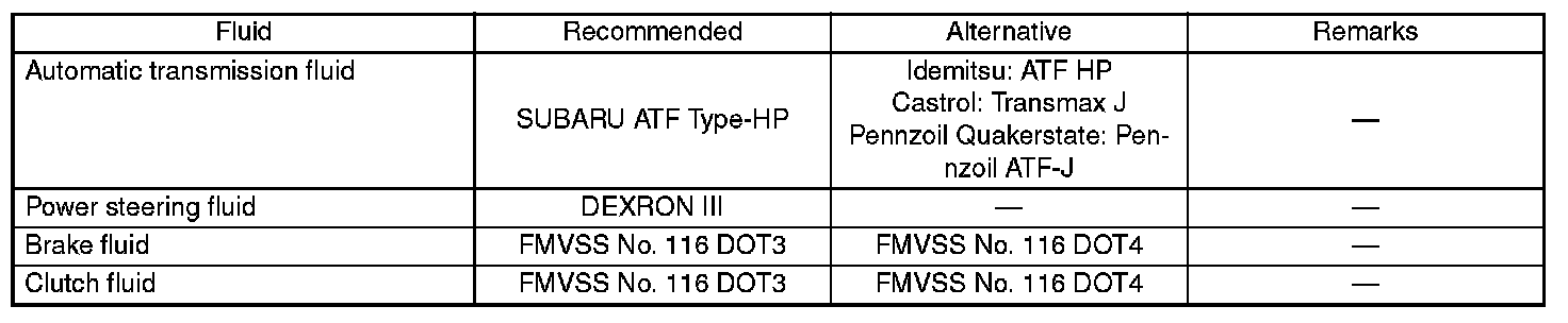 Use the fluids specified in the table. Do not mix two different kinds or makes of fluid.