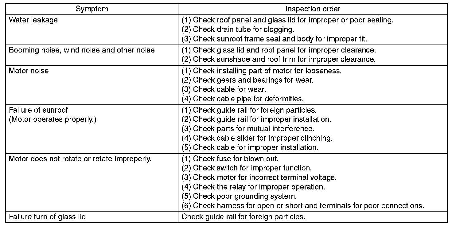Sunroof Control SystemINSPECTION