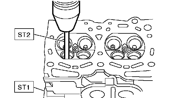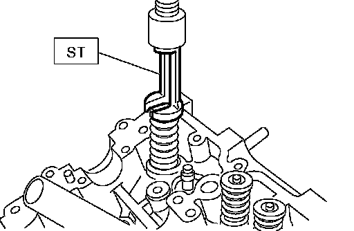 1 Place the cylinder head on ST1 with the combustion chamber upward so that valve guides enter the holes in ST1.