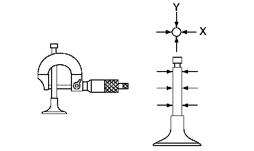 1. Check the clearance between valve guide and stem. The clearance can be checked by measuring respectively the outer diameter of valve stem and inner diameter of valve guide with a micrometer.