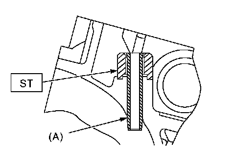 5 Put a new valve guide, coated with sufficient oil, in cylinder, and insert the ST1 into valve guide. Press in until the valve guide upper end is flush with the upper surface of ST2.