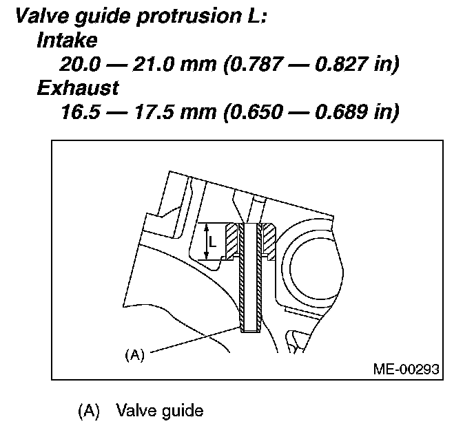 Valve guide inner diameter: 6.000 - 6.012 mm (0.2362 - 0.2367 inch)