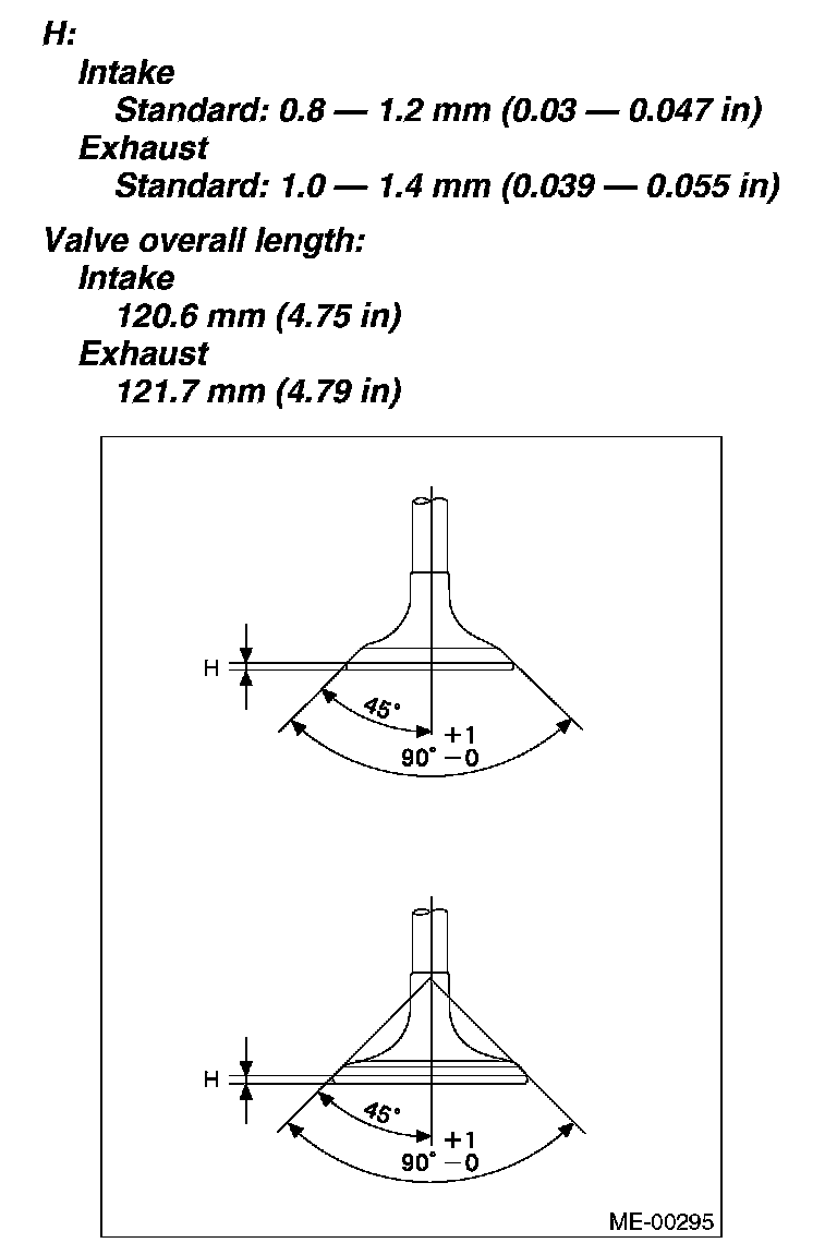 1. Inspect the flange and stem of valve, and replace if damaged, worn or deformed, or if "H" exceed the standard value.