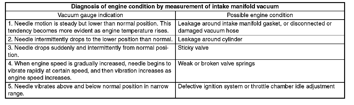 By observing the gauge needle movement, internal condition of the engine can be diagnosed as described below.