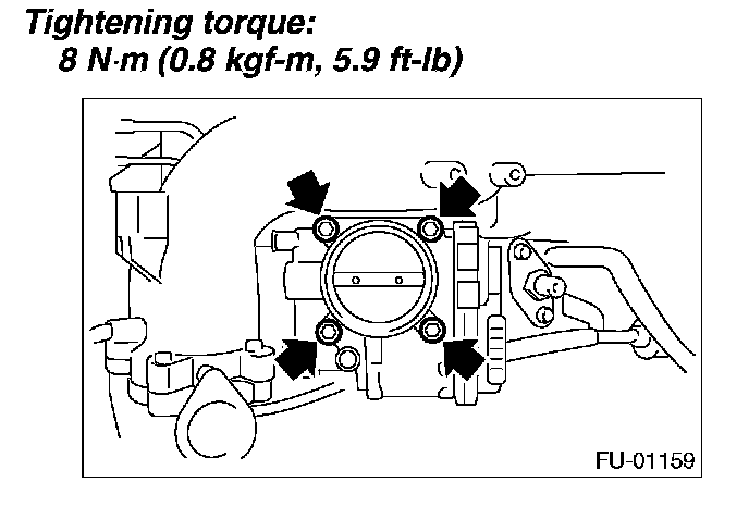 6. Remove the bolts which secure throttle body to intake manifold.