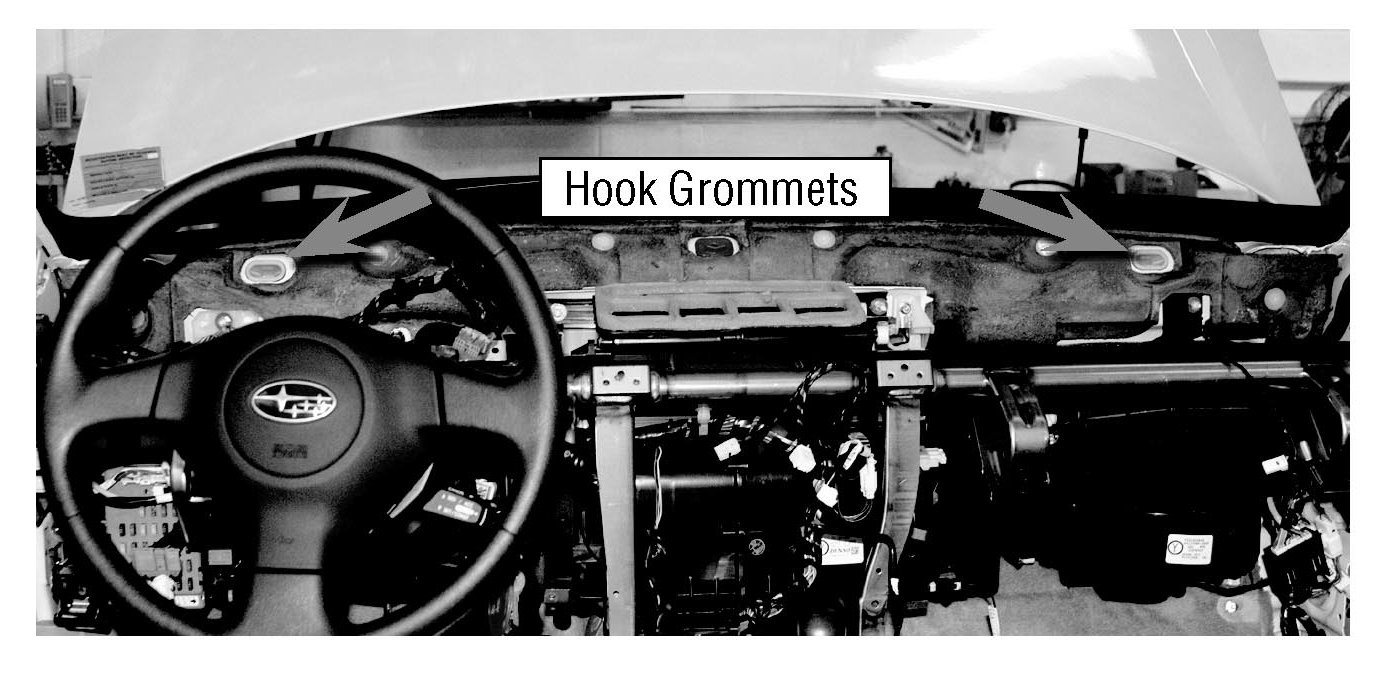 If you encounter a customer complaint of a rattle/squeak noise coming from the instrument panel just below the windshield area, it may be caused by the instrument panel hooks. To eliminate the noise follow the repair procedure listed.