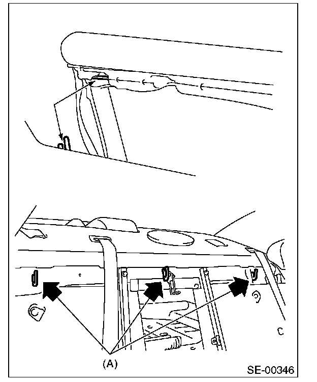 5. Remove the anchor part on backrest side from the hook on body side (A) while lifting up the backrest to detach it from vehicle.