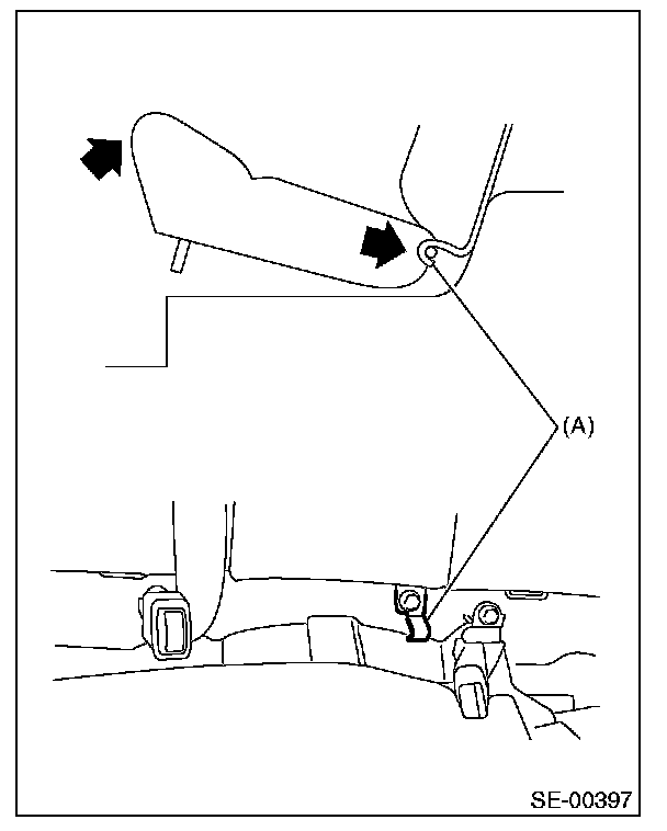 2. Remove the hook (A) by pushing it backward while lifting up the front side of seat cushion to detach seat cushion.