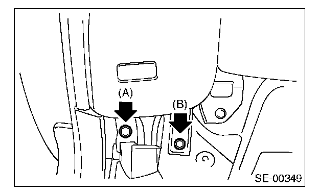 8. Remove the lower anchor bolt (A) of outer seat belt and backrest shoulder bolt (B).