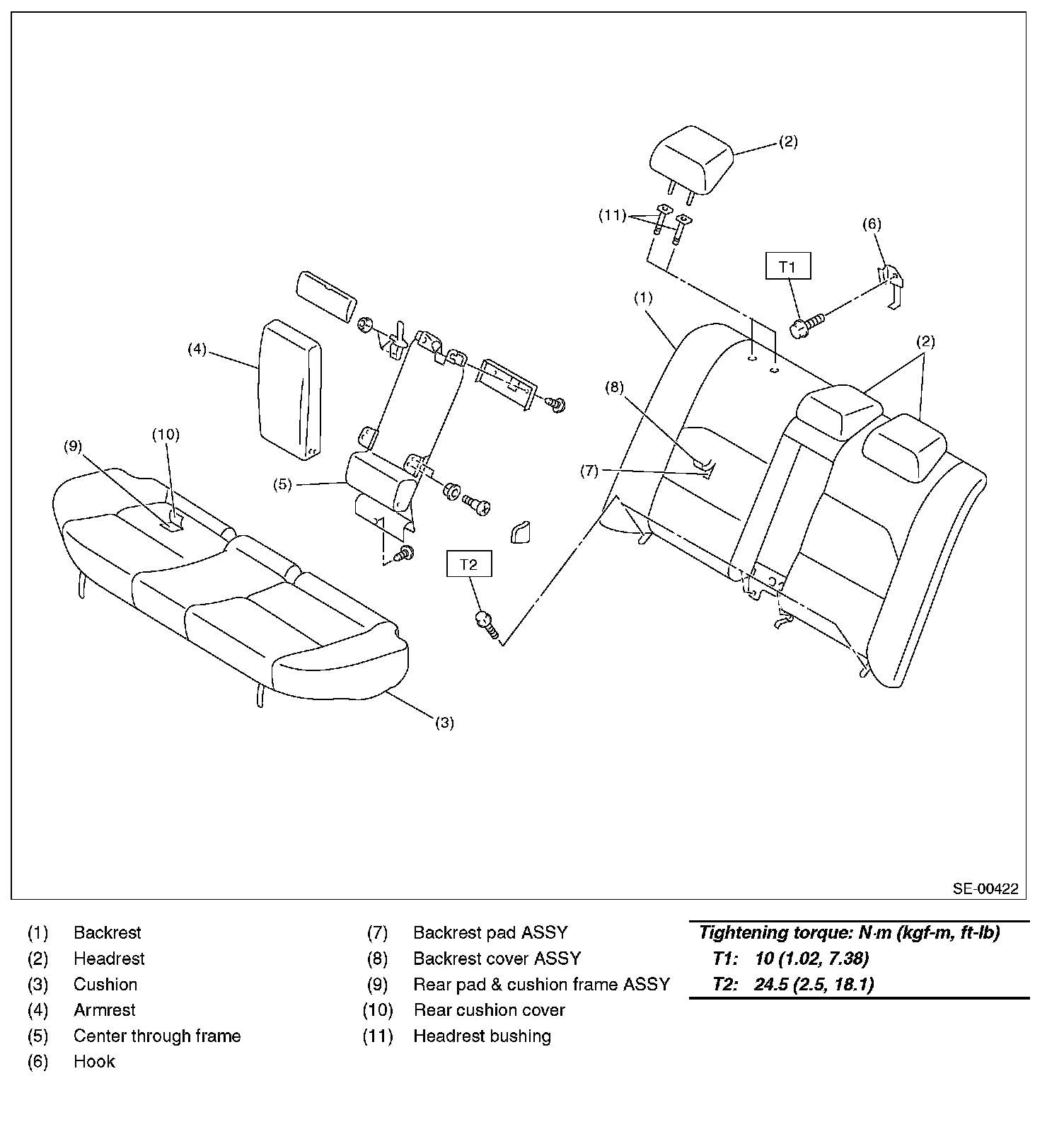 T2: 22 N.m (2.24 kgf-m, 16.2 ft-lb)